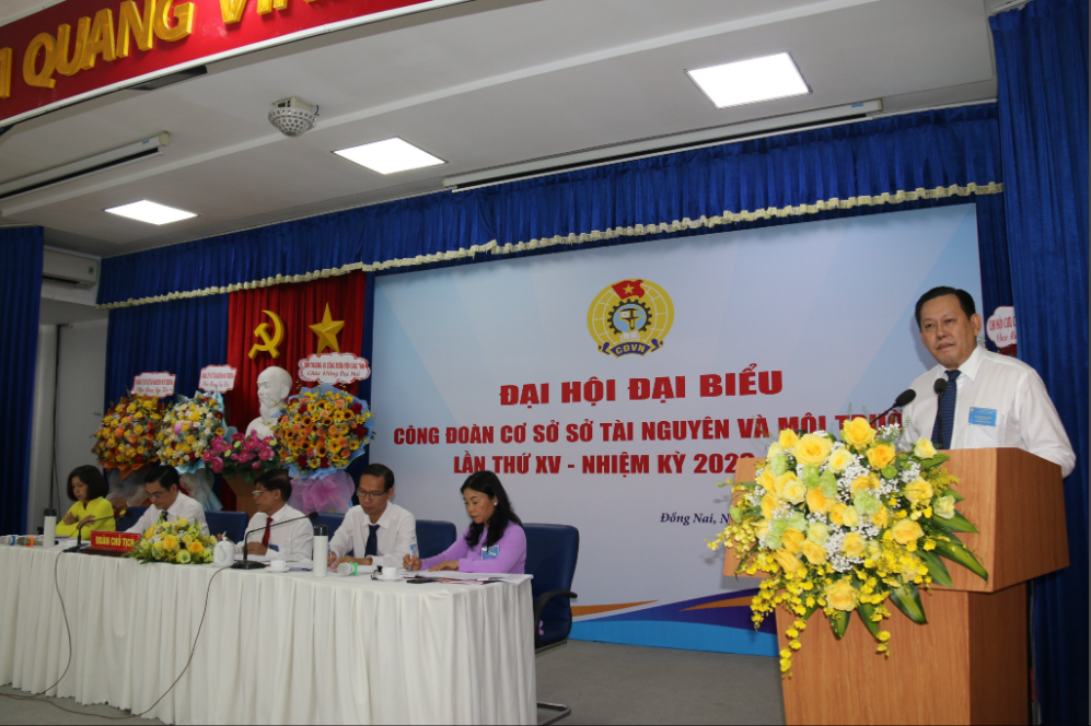 Phát biểu chỉ đạo Đại hội đồng chí Đặng Minh Đức, Bí Thư Đảng ủy, Giám đốc Sở biểu dương và ghi nhận đánh giá cao sự cố gắng nỗ lực của BCHCĐ và toàn thể đoàn viên, người lao động trong cơ quan, sự nỗ lực cố gắng đó đã góp phần củng cố, nâng cao vị thế của tổ chức Công đoàn, đóng góp quan trọng vào thực hiện thắng lợi các nhiệm vụ chính trị của Sở Tài nguyên và Môi trường, trên cơ sở đó hằng năm nhiều tập thể và cá nhân đã được các cấp có thẩm quyền ghi nhận tặng thưởng danh hiệu thi đua và hình thức khen thưởng. Đồng thời, đồng chí cũng chỉ ra một số tồn tại hạn chế để từ đó Ban Chấp hành nhiệm kỳ 2017 – 2022 rút ra những bài học kinh nghiệm, đề ra mục tiêu, phương hướng, nhiệm vụ nhiệm kỳ 2023 – 2028.