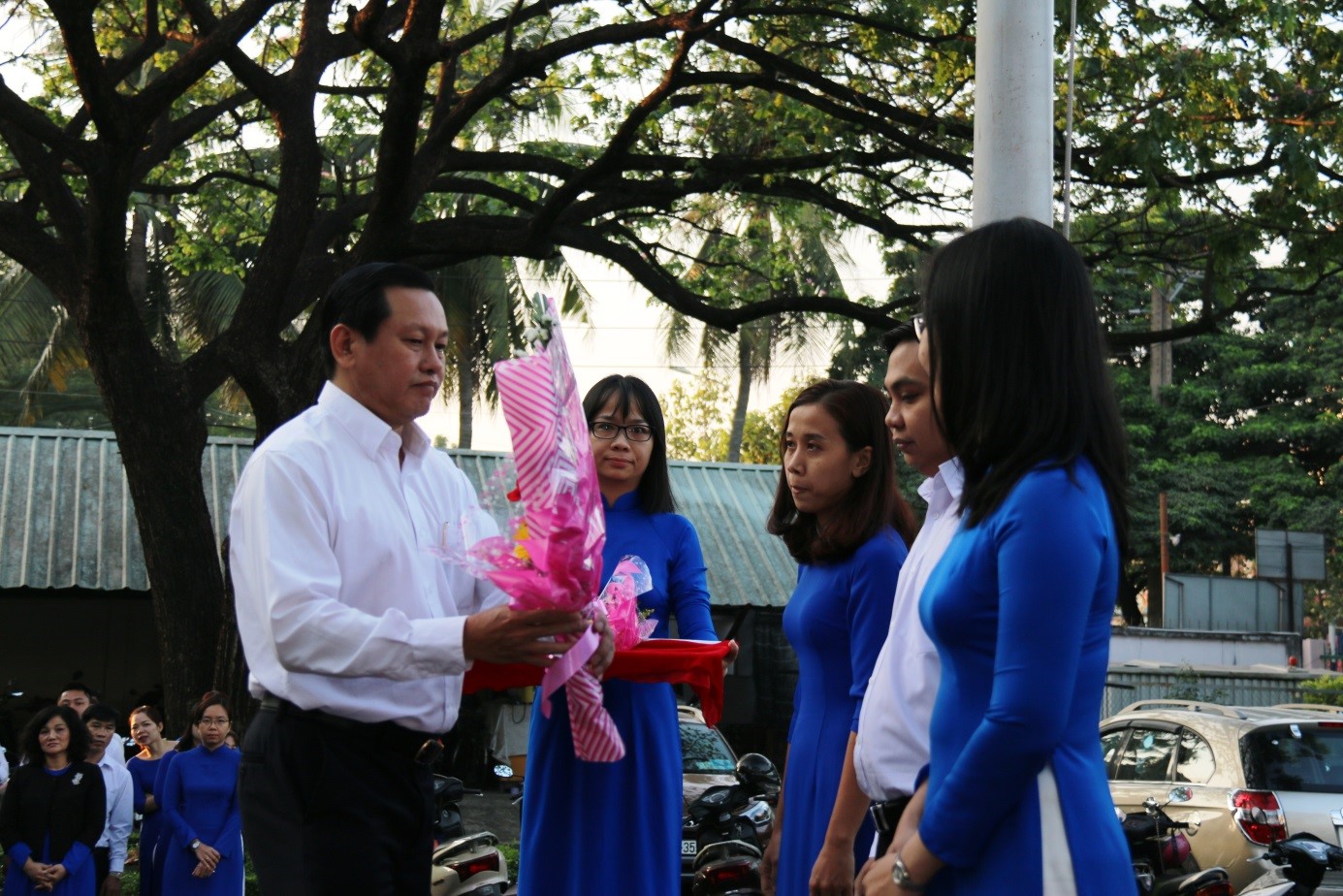 tặng hoa tuyên dương các tấm gương tiêu biểu